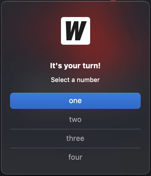 Message: "Select a number",